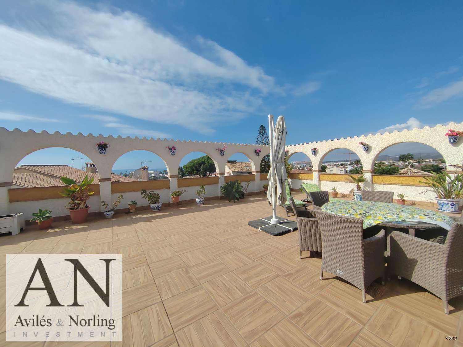 Descubre esta encantadora villa en La Caleta de Vélez, ubicada en una tranquila zona residencial y a solo 5 minutos andando de la playa y el puerto deportivo. Una propiedad única que combina ubicación privilegiada, vistas al mar y excelentes oportunidades de inversión en la Costa del Sol, ya que se divide en dos viviendas independientes: una planta baja y un estudio en la planta alta con acceso privado.