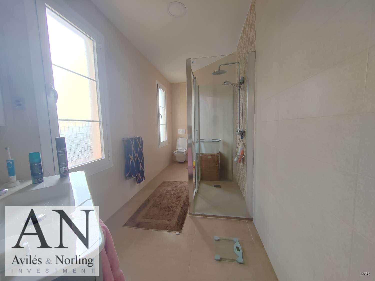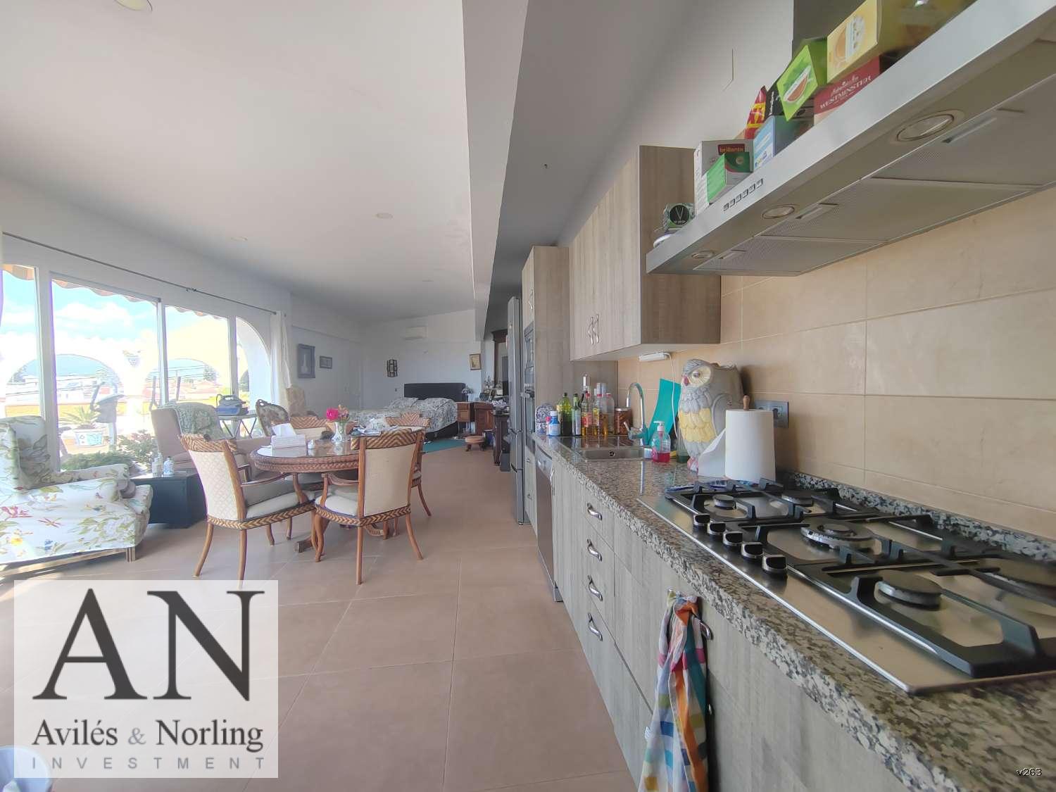 En la planta alta se encuentra el apartamento tipo estudio, con entrada independiente desde la calle. Cuenta con salón-comedor, zona de cocina y baño, además de una gran terraza con vistas panorámicas al mar y a la montaña. Este espacio resulta perfecto como alquiler vacacional, apartamento para invitados o incluso como una segunda vivienda dentro de la misma propiedad.