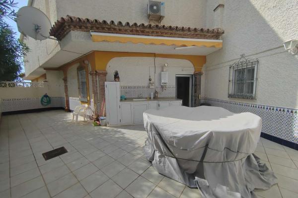 La villa forma parte de una urbanización con piscina comunitaria y zonas ajardinadas. Su ubicación en la parte baja de La Caleta permite disfrutar de todas las comodidades a pie: supermercados, tiendas, restaurantes, colegios, campo de golf y el puerto deportivo de Caleta de Vélez.
