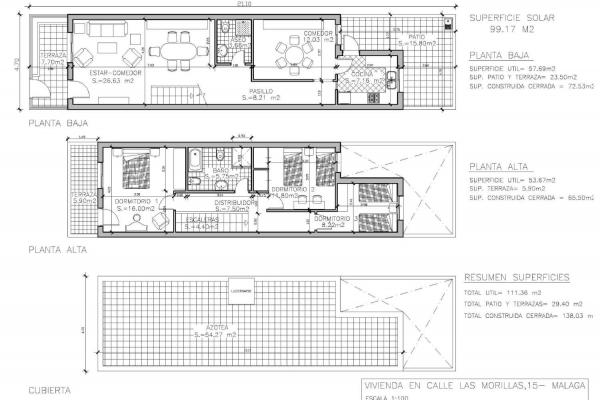 La vivienda es un chalet pareado distribuido en dos plantas, con 165 m² construidos (135 m² útiles) y una parcela de 99 m². Dispone de 3 dormitorios, 2 baños, armarios empotrados, terraza y balcón, lo que aporta amplitud y buena luminosidad. Se encuentra en buen estado de conservación y cuenta con espacios exteriores perfectos para disfrutar del clima de Málaga. Un lujo urbano listo para entrar a vivir...