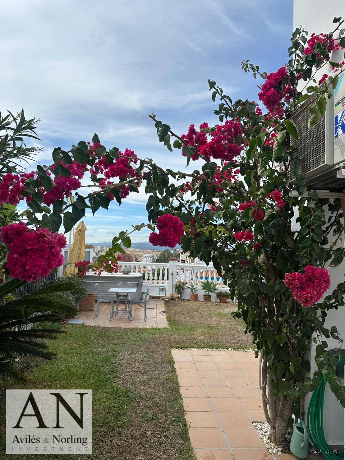 En la parte exterior, la propiedad seduce con su amplio jardín privado, perfecto para relajarse, tomar el sol o disfrutar de veladas al aire libre mientras se contemplan las preciosas puestas de sol del litoral malagueño.