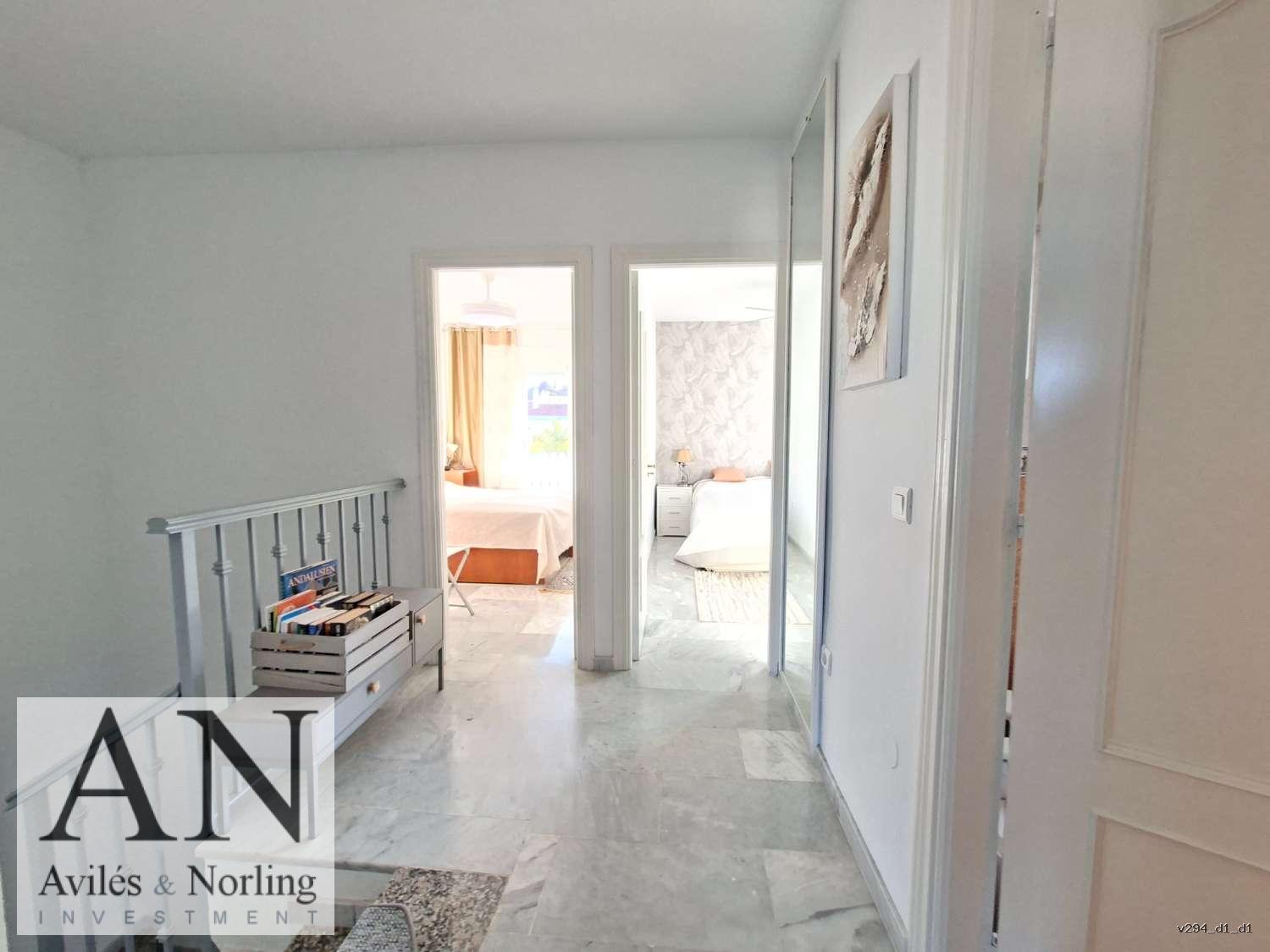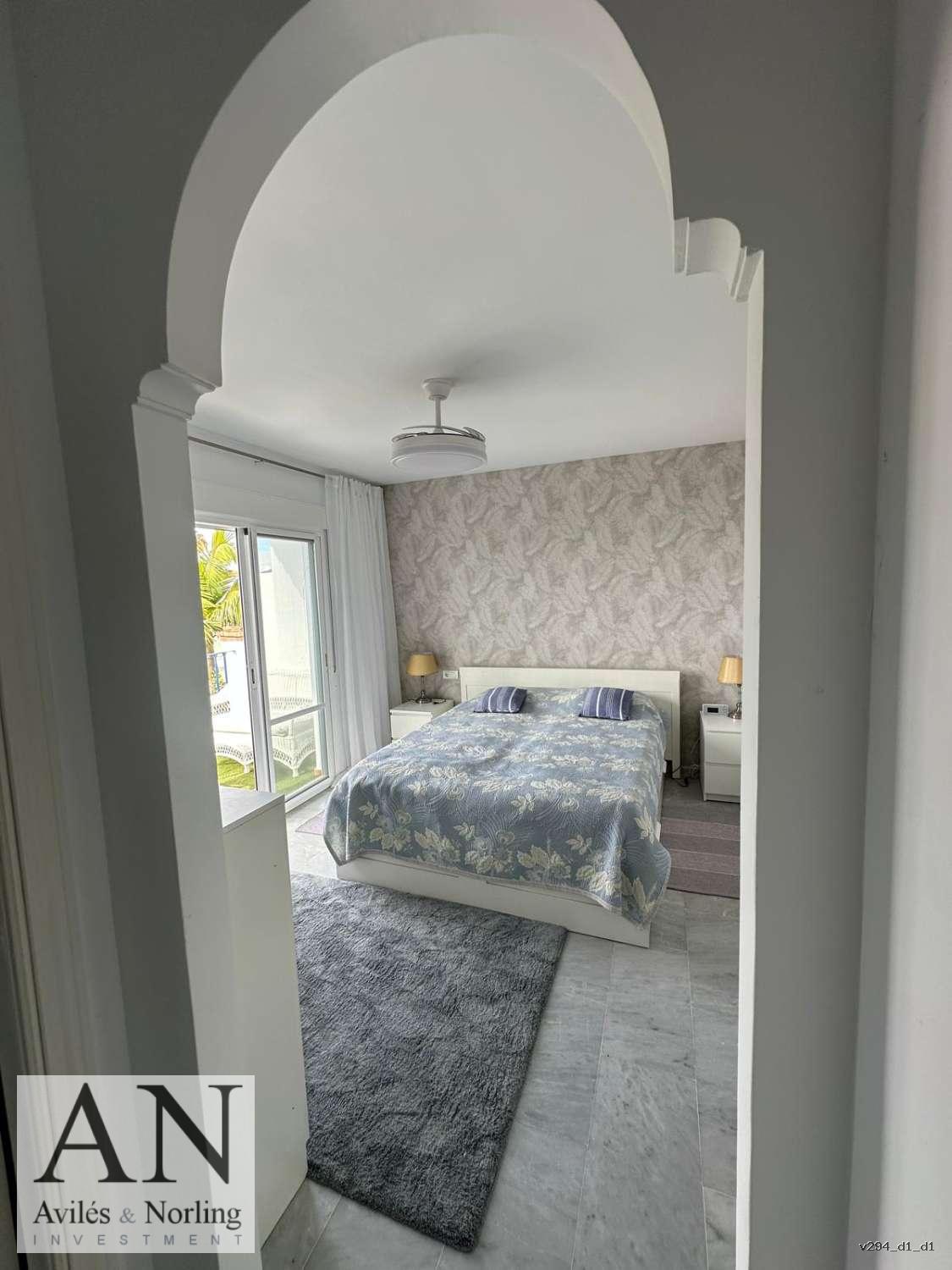 Esta encantadora casa en Mesquitilla / Algarrobo Costa ofrece un estilo de vida mediterráneo privilegiado, con impresionantes vistas al mar y la comodidad de estar a muy poca distancia de la playa. Se encuentra en una zona residencial tranquila, dentro de una urbanización cerrada con amplias zonas comunes y una gran piscina. Su ubicación es ideal tanto para quienes buscan vivienda habitual como para quienes desean invertir en un inmueble con excelente potencial para alquiler vacacional.