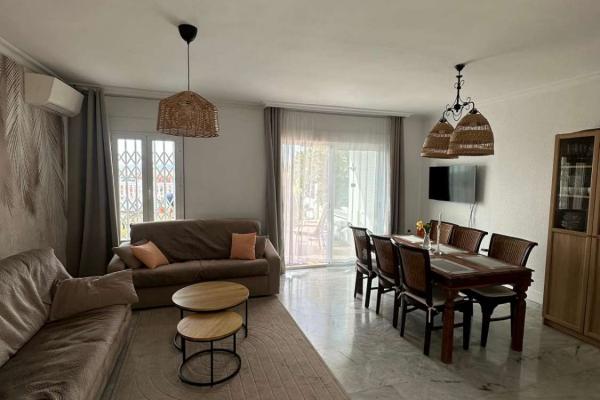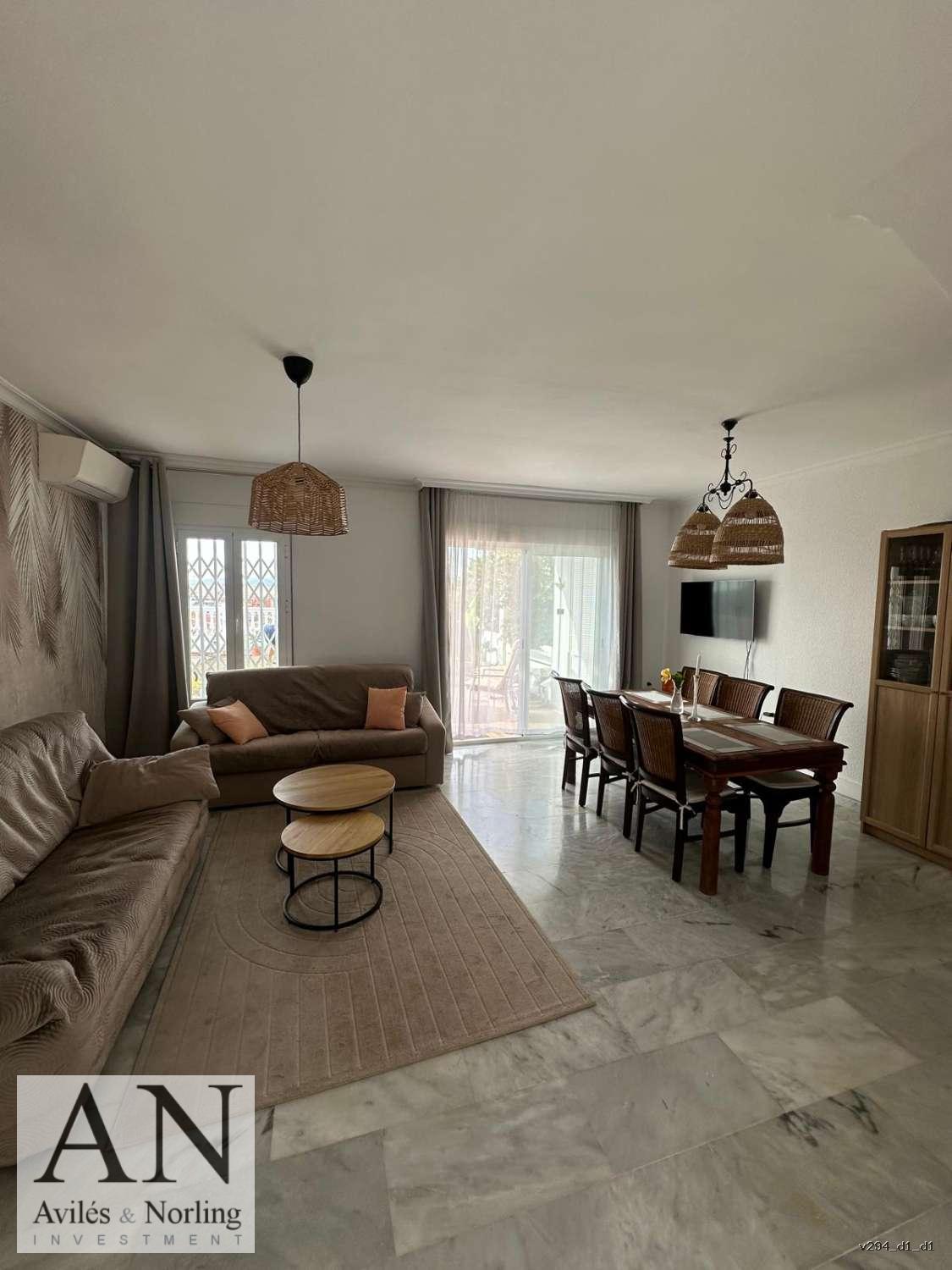 La propiedad cuenta con 115 m² construidos, perfectamente distribuidos, además de un jardín privado de 120 m² que invita a disfrutar del aire libre, las comidas al sol y los atardeceres con vistas al mar. La vivienda está en perfecto estado y no requiere reformas, aunque existe la posibilidad de integrar la cocina con el salón para crear un espacio más abierto y moderno.