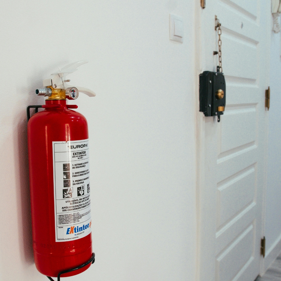 Extintor, ubicado en un lugar visible y de fácil acceso.
