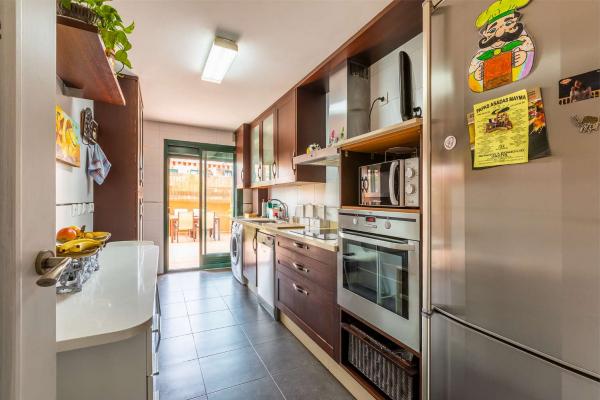 La vivienda se distribuye en un salón-comedor muy luminoso con salida a una terraza ideal para disfrutar del clima de la Costa del Sol. La cocina es independiente, totalmente equipada. El dormitorio principal dispone de armarios empotrados y baño completo en suite. Además, cuenta con dos dormitorios adicionales, ambos exteriores, también con armarios empotrados. Un segundo cuarto de baño completo ofrece comodidad para uso familiar o de invitados.