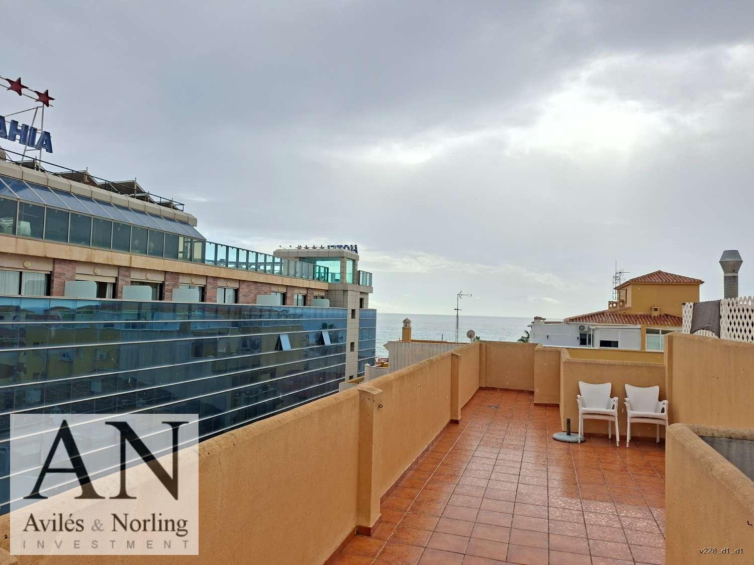El gran protagonista de este ático es su espectacular terraza, muy amplia y con unas vistas al mar que enamoran desde el primer momento. Es el lugar ideal para disfrutar del clima mediterráneo, organizar comidas al aire libre, relajarse al atardecer o simplemente contemplar el horizonte.