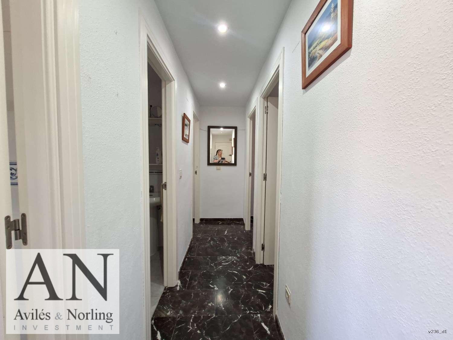 Este fantástico piso situado en una cuarta planta con ascensor ofrece todo lo necesario para disfrutar cómodamente de la costa. La vivienda cuenta con tres amplios dormitorios y dos cuartos de baño, ideal tanto para familias como para aquellos que buscan espacio y comodidad.