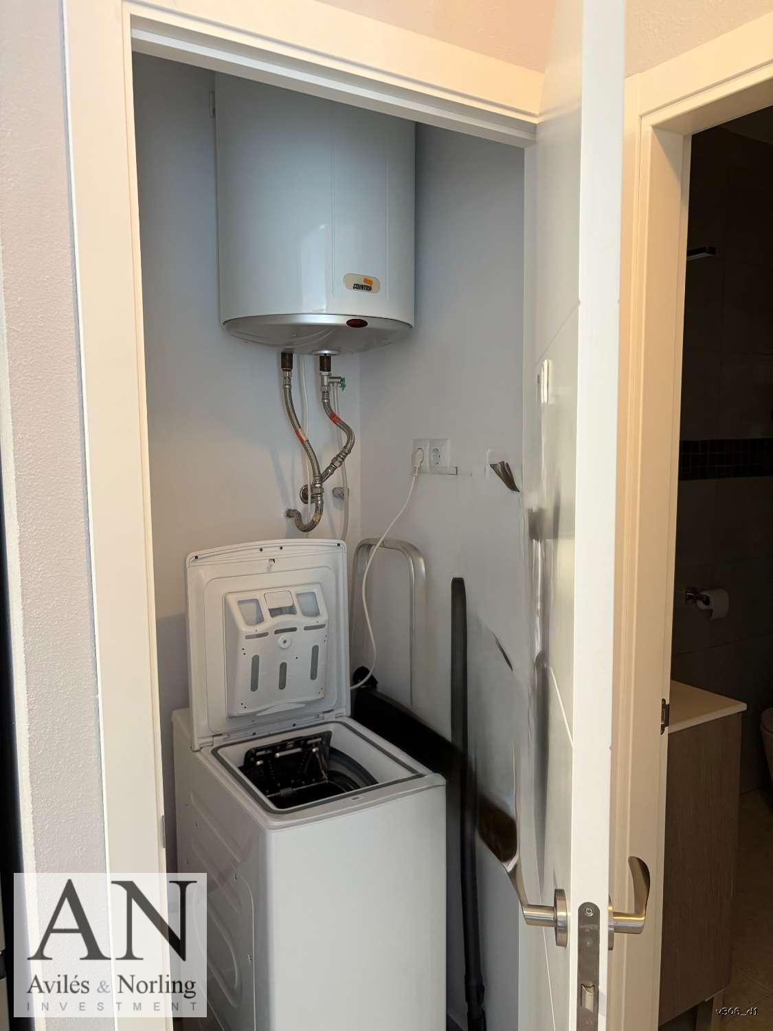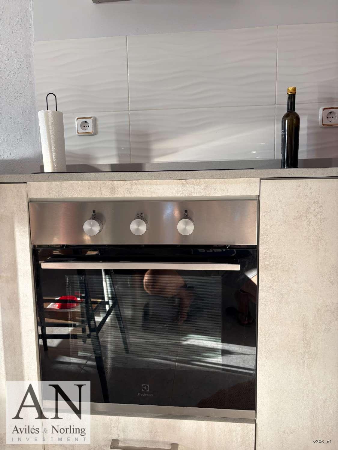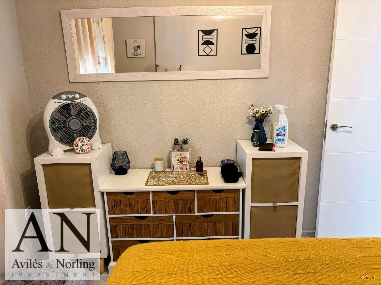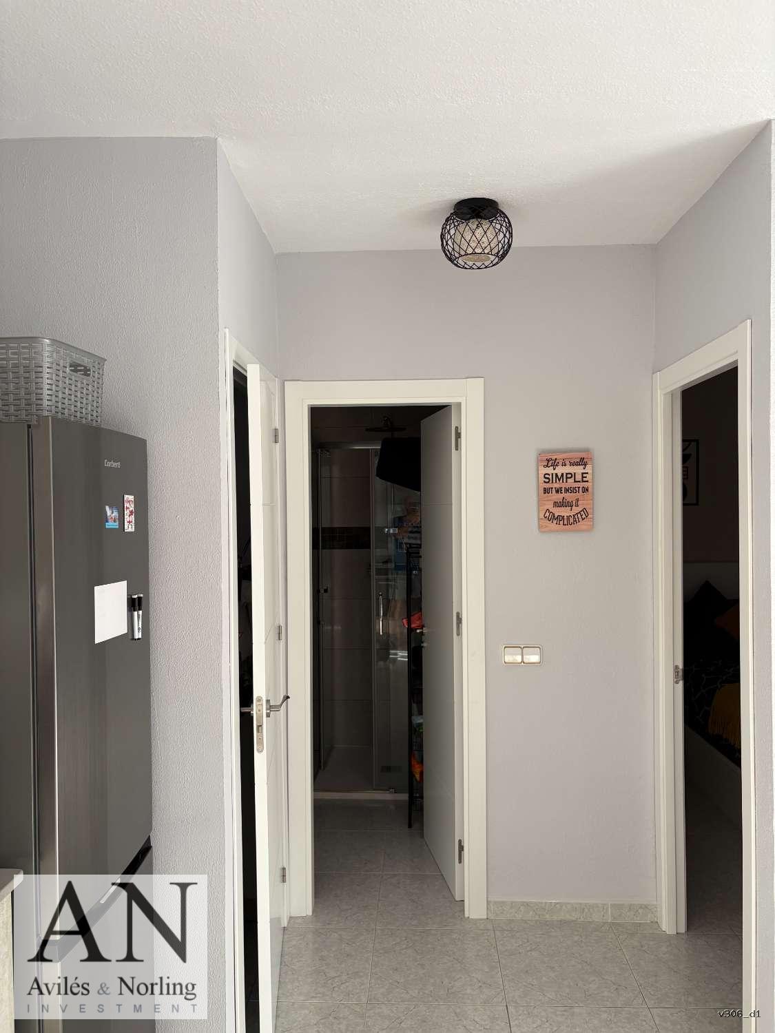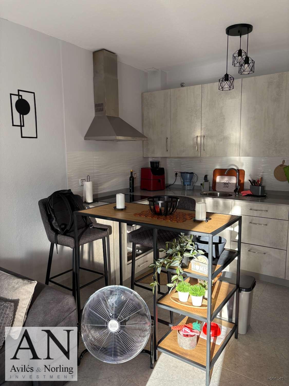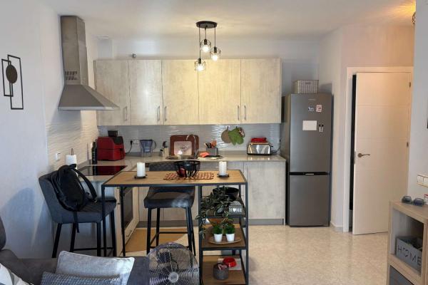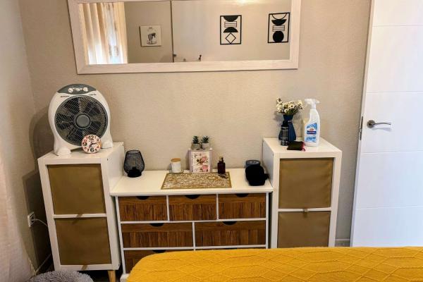 La vivienda cuenta con 1 dormitorio y 1 baño, distribuidos en 60 m² construidos, diseñados para aprovechar al máximo cada espacio. El interior es funcional y luminoso, con armarios empotrados que aportan orden y practicidad, y aire acondicionado que garantiza confort durante todo el año.