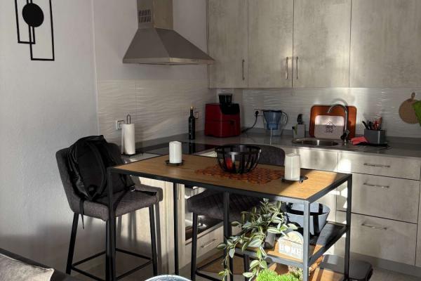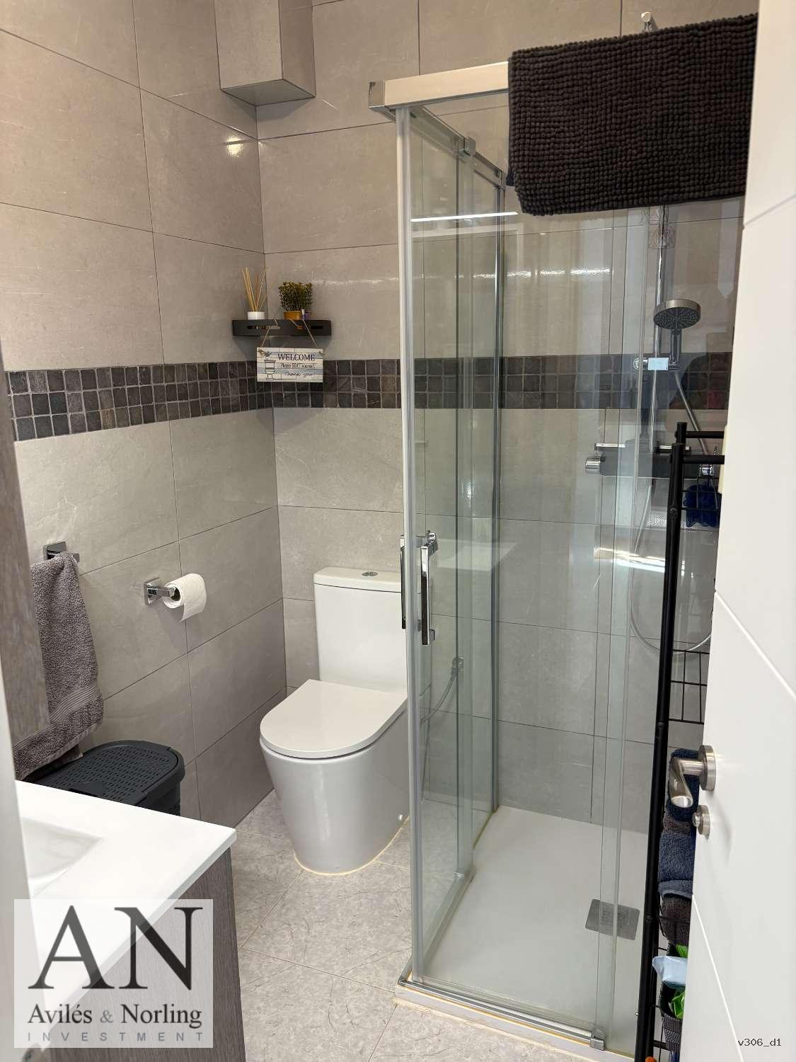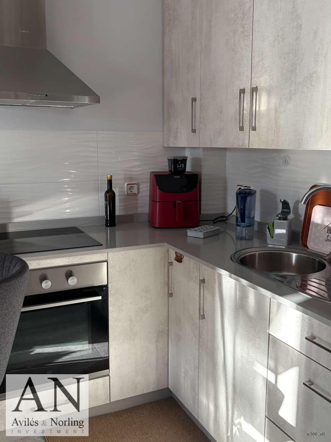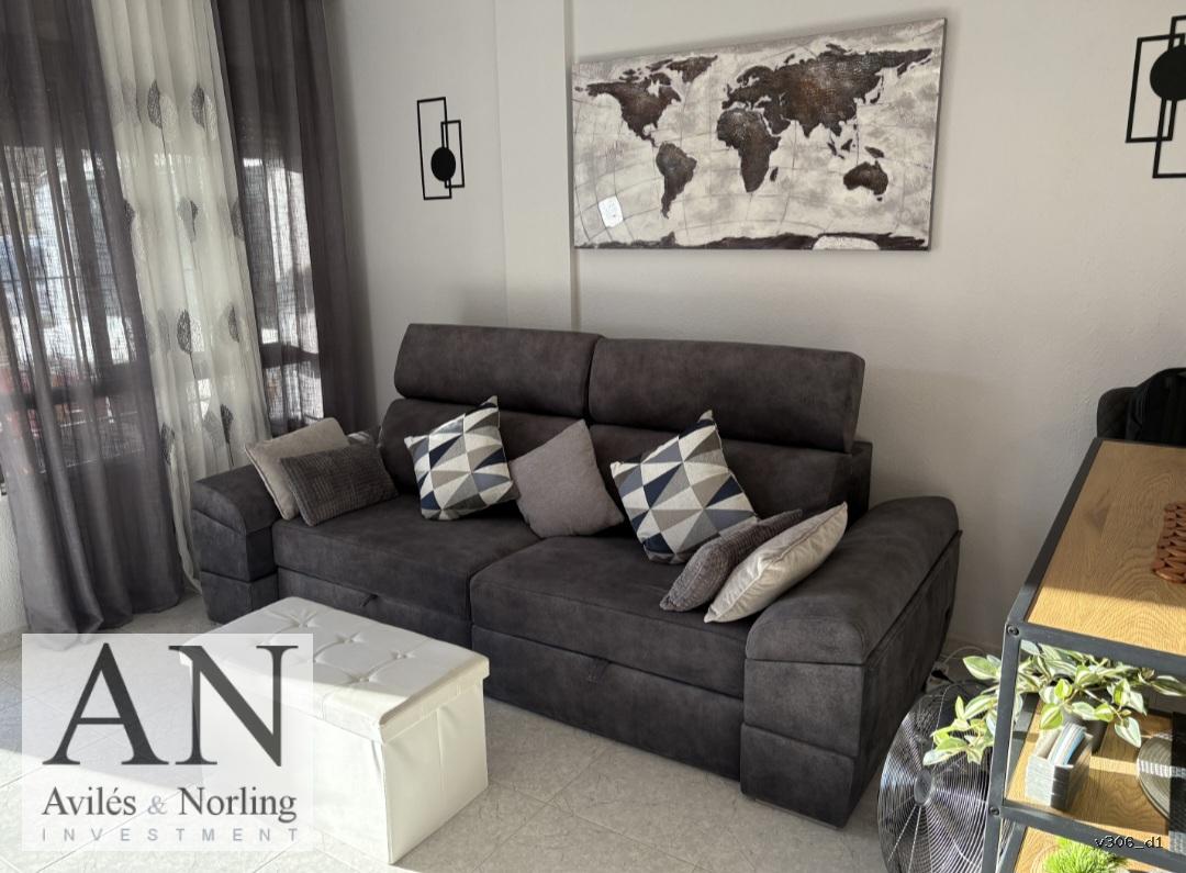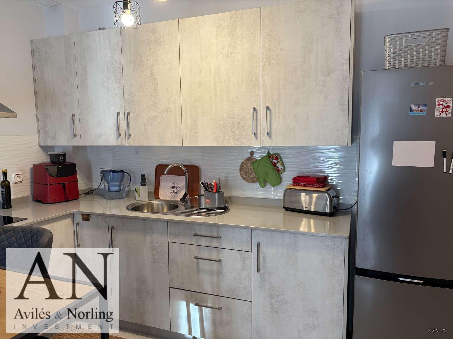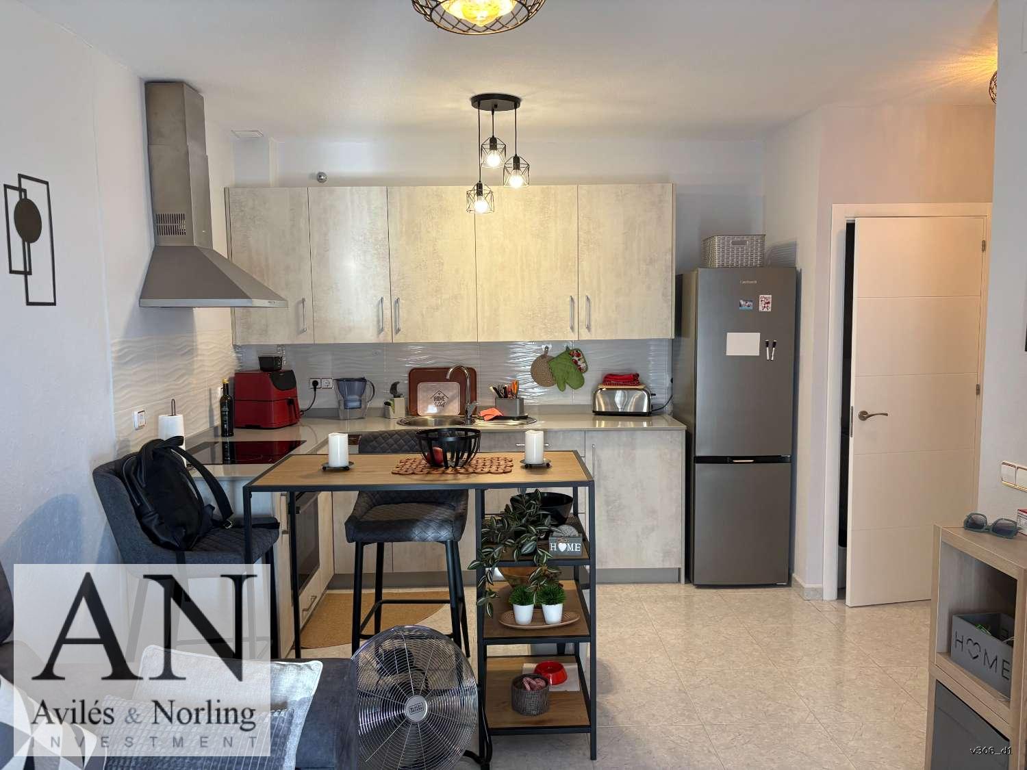 La vivienda cuenta con 1 dormitorio y 1 baño, distribuidos en 60 m² construidos, diseñados para aprovechar al máximo cada espacio. El interior es funcional y luminoso, con armarios empotrados que aportan orden y practicidad, y aire acondicionado que garantiza confort durante todo el año.