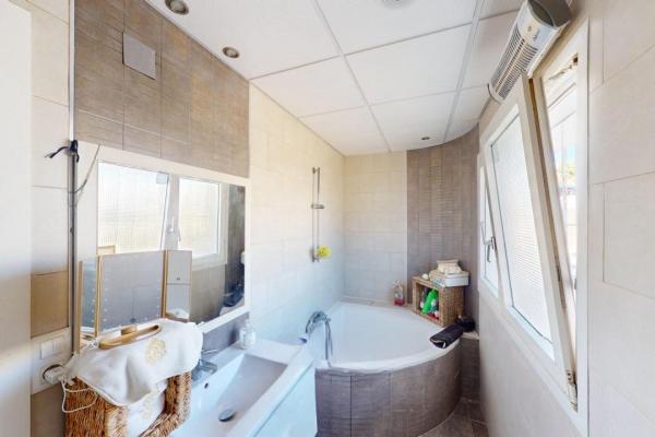 La maison dispose de quatre chambres, toutes bénéficiant d’une belle luminosité et d’une ventilation naturelle, pensées pour offrir confort et intimité. Les trois salles de bains sont réparties de manière stratégique et présentent des finitions modernes ainsi que des solutions de rangement pratiques.